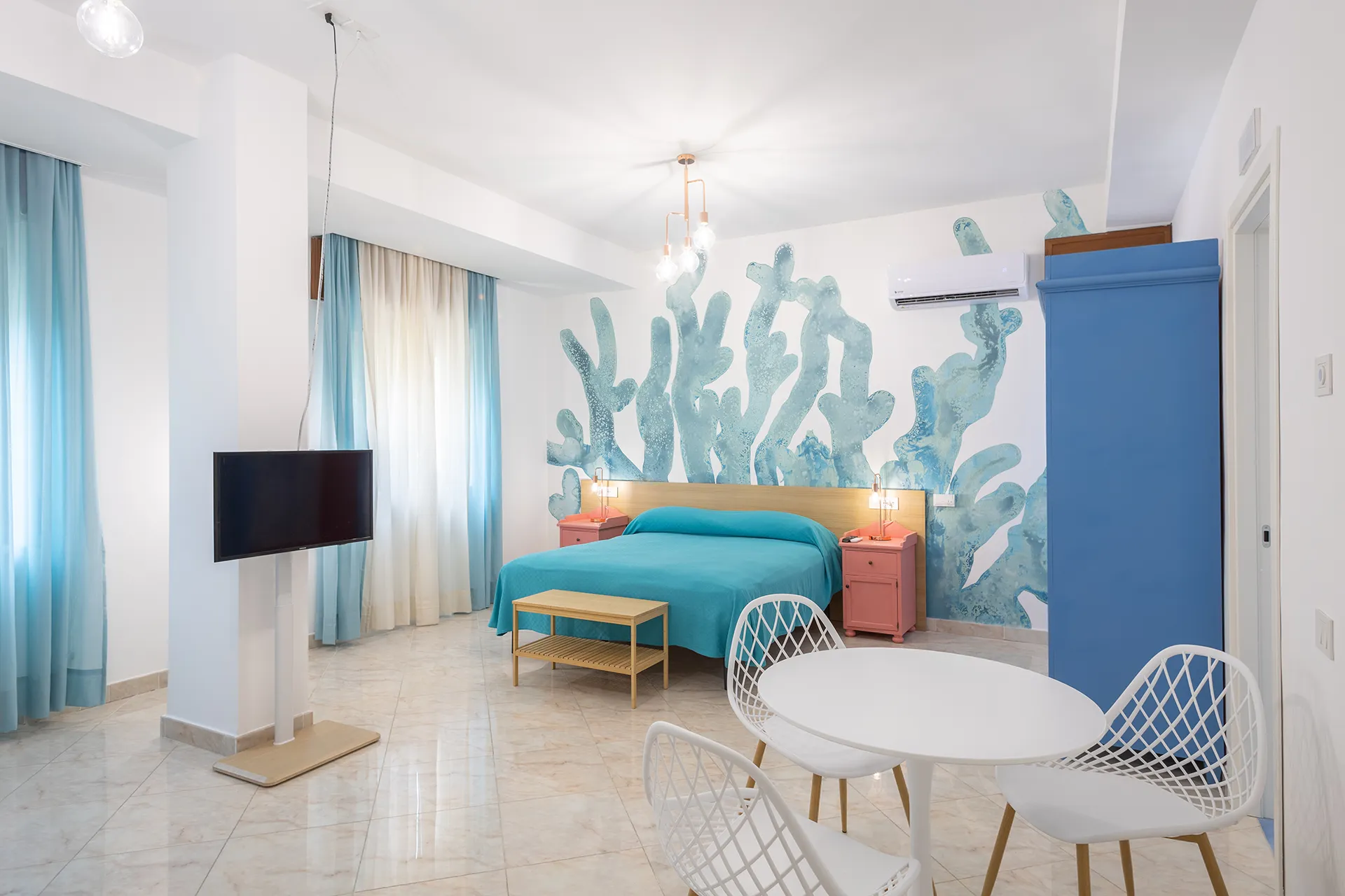 We have given new life to this place, keeping intact the spirit of home that has always distinguished it. Today we welcome you in four independent studios, each with equipped kitchenette, private bathroom in the room, and a soul that recalls the colors and scents of our land: Il Limone, La Zagara, Il Fico d'India and Il Corallo.